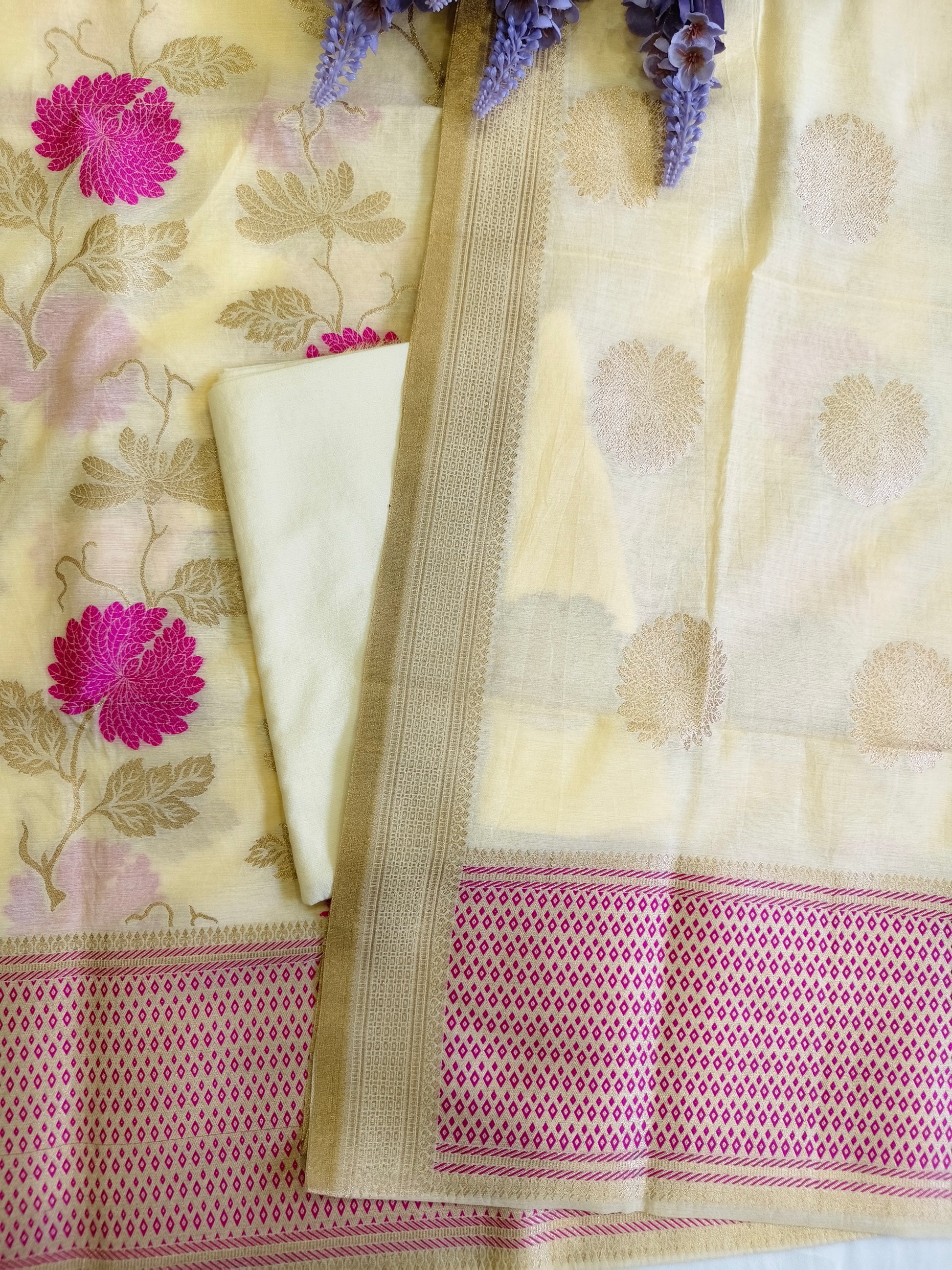 Pastel Yellow Banarasi Cotton Suit Set