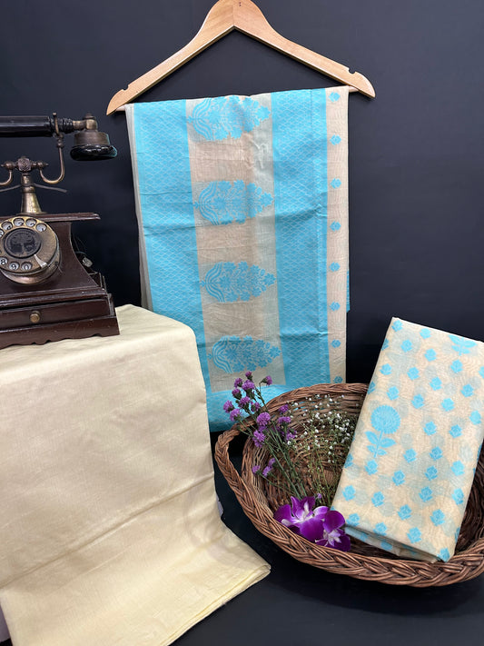 BANARASI COTTON SUIT SET- LIGHT BLUE