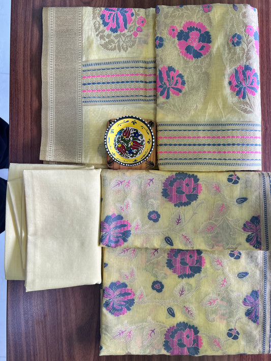 BANARASI COTTON SUIT SET- LIGHT YELLOW